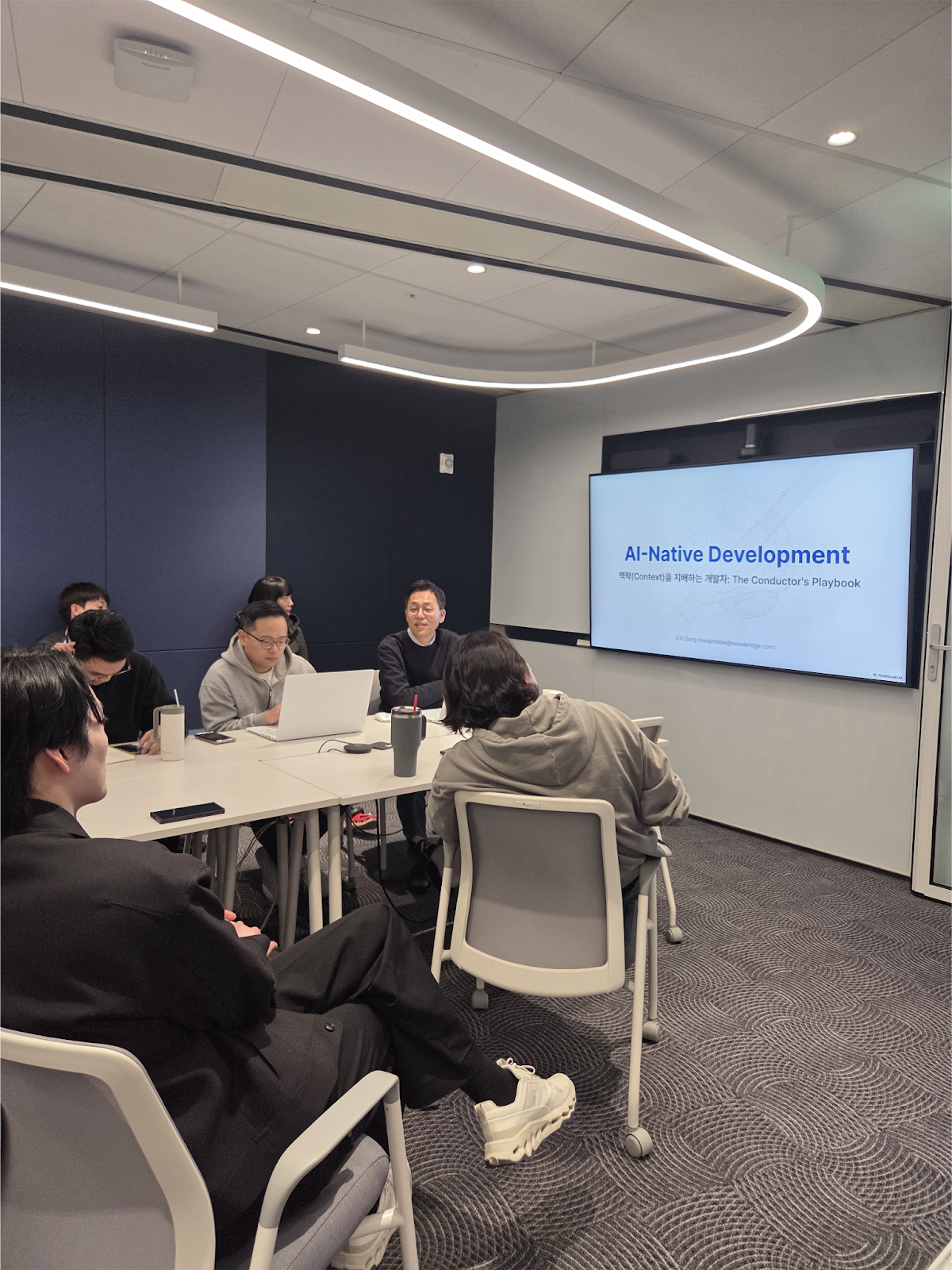 웨이브릿지는 전사 차원의 AI 네이티브 전환을 진행하고 있다. 이 과정에서 에릭이 강조한 핵심은 일관되게 반복됐다. 개발자는 이제 코드를 '작성하는 Writer'가 아니라, AI의 작업을 '지휘하는 Conductor'가 되어야 한다는 것.